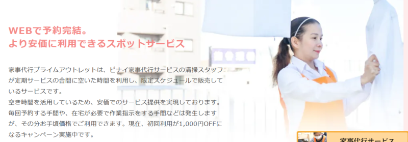 ピナイ家事代行サービスの「プライムアウトレット」とは?